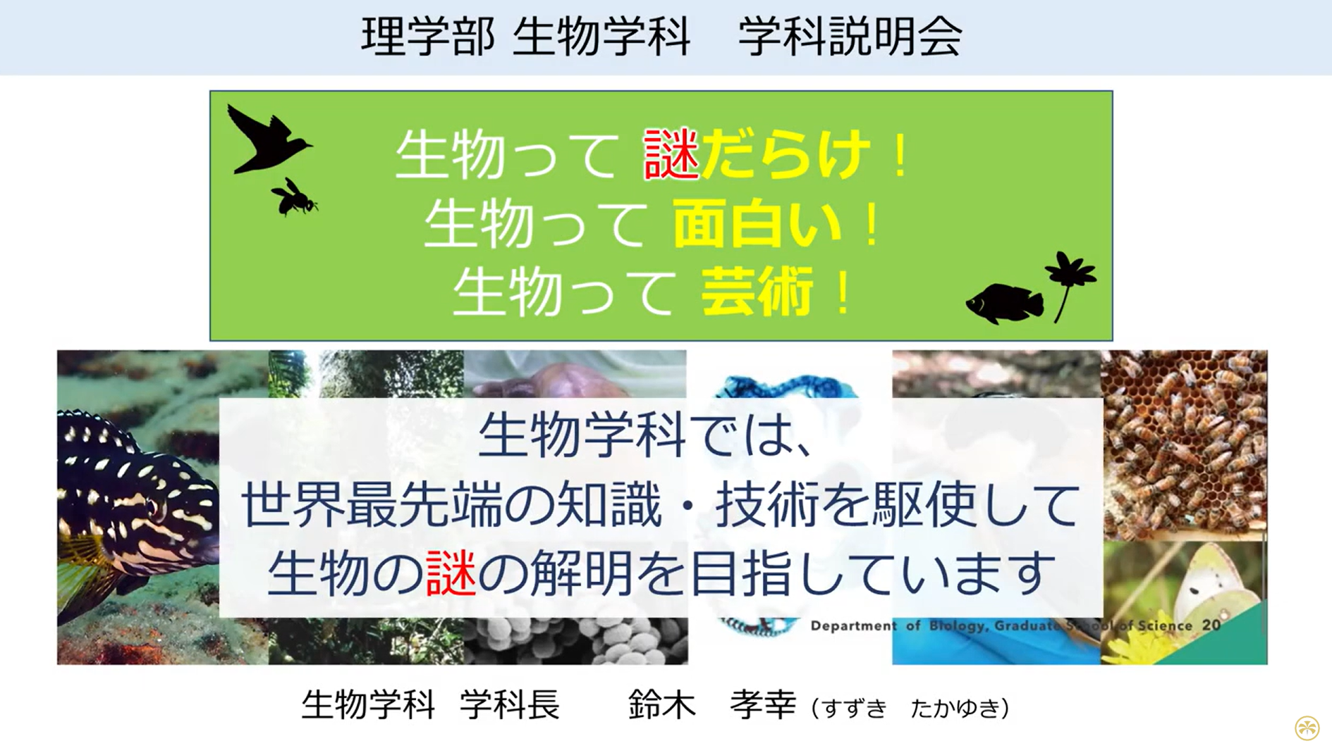理学部生物学科研究室紹介動画(当日アーカイブ)