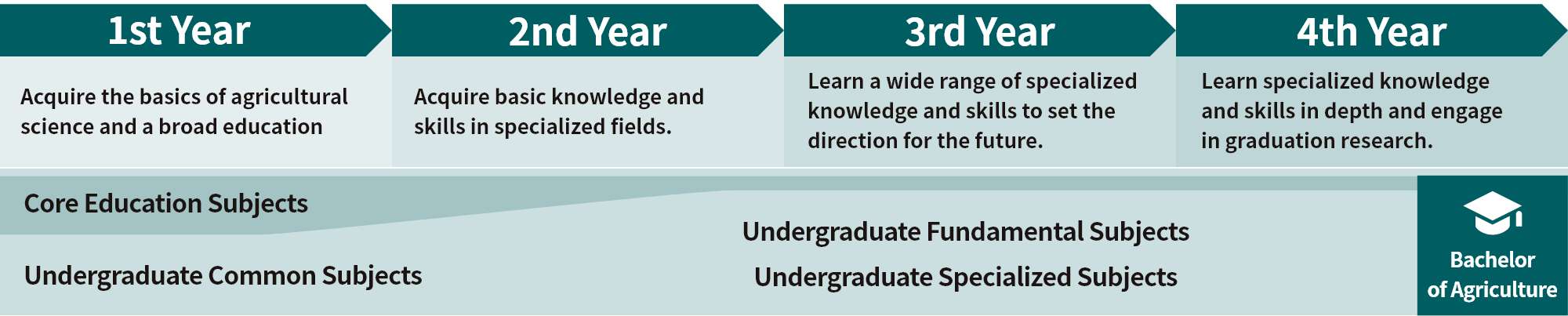 Taking advantage of its location in a major city, the School of Agriculture will develop education and research related to “effective utilization of biological resources,” “contribution to health issues,” “restoration and sustainable development of the urban environment,” and “construction of a sustainable social infrastructure,” and link these studies to global research and development.