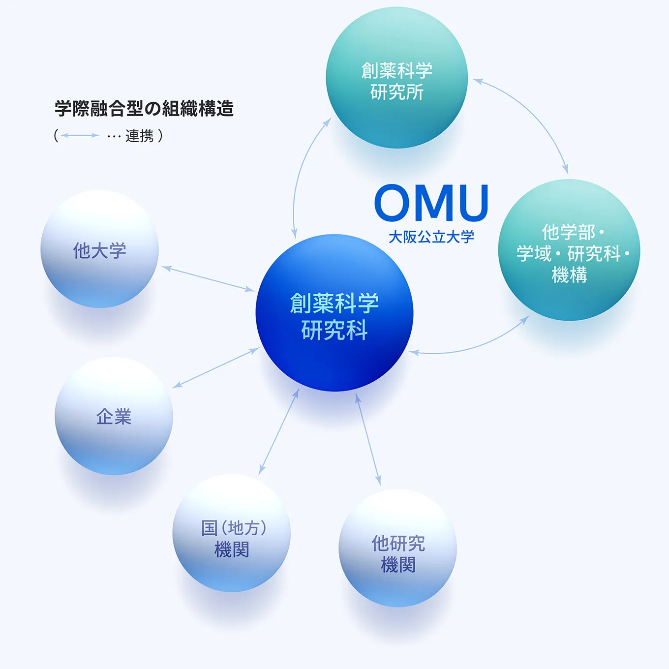 社会環境の変化により創薬の課題が複雑化する中、新たなアプローチが求められ、多様な専門領域との連携・融合が一層重要となっています。大阪公立大学は多様な学術領域を持つ総合大学として、“総合知による創薬”の実現を目指しています。