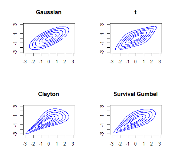 コピュラの手法は「同時分布が周辺分布とコピュラに分解できる」ことを示した“スクラーの定理”を理論的支柱にしており、複雑な同時分布を柔軟に構築できるところにその利点があります。特にファイナンスデータに特徴的な“非対称な関係”や“下側テールにおける依存関係”を容易に描写できる点が、ファイナンスの実証分野でコピュラが普及した要因に挙げられます。
