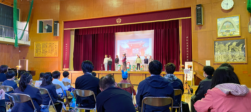 On November 11, international students attended the school’s art festival and watched a play, in which a group of international students—played by school children—traveled through time and space in the town of Misaki.