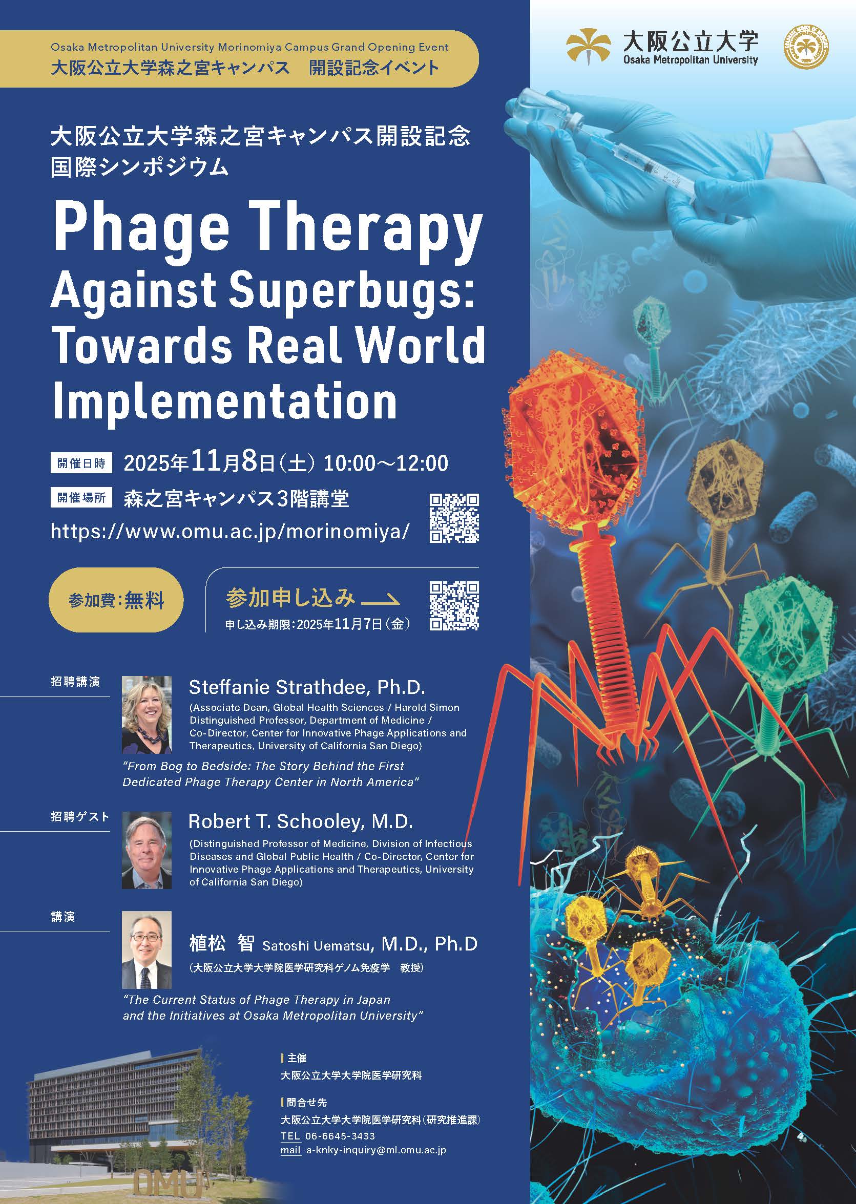 The Graduate School of Medicine at Osaka Metropolitan University will host the international symposium, “Phage Therapy Against Superbugs: Towards Real World Implementation”, to commemorate the opening of Morinomiya Campus.