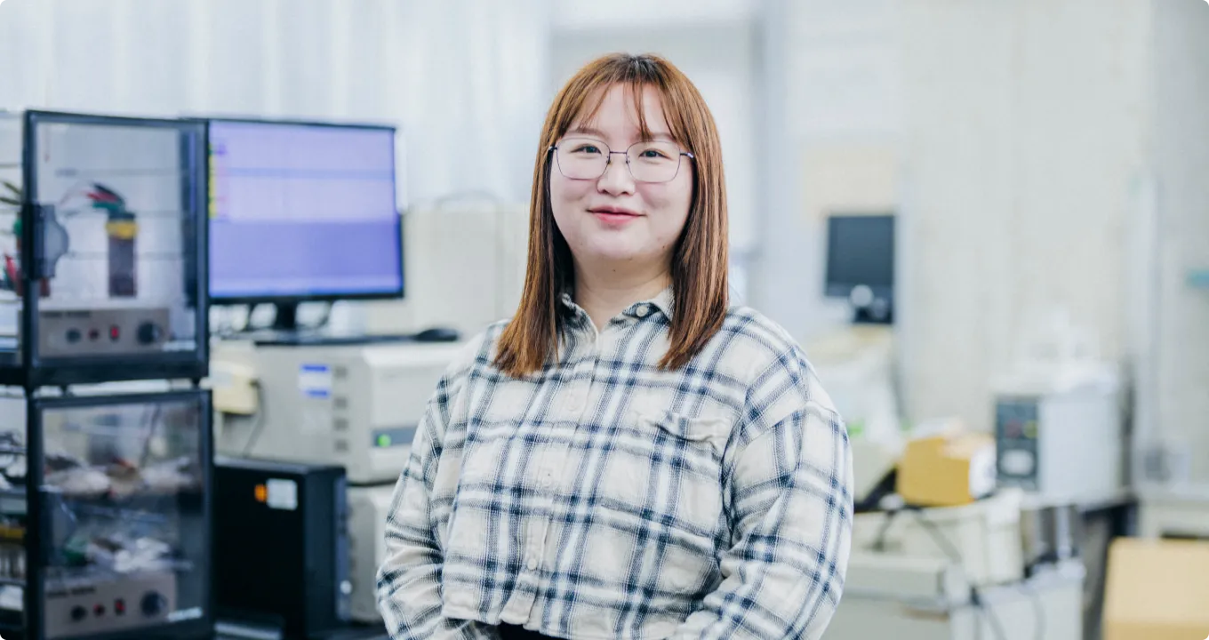 My current research focuses on the positive electrodes and electrolytes of rechargeable aluminum batteries. Recently, I have been investigating how electrolytes with different molar ratios affect graphite positive electrodes. Compared to my undergraduate experience, the research facilities at Osaka Metropolitan University are much more advanced, allowing me to conduct experiments efficiently and produce meaningful results.