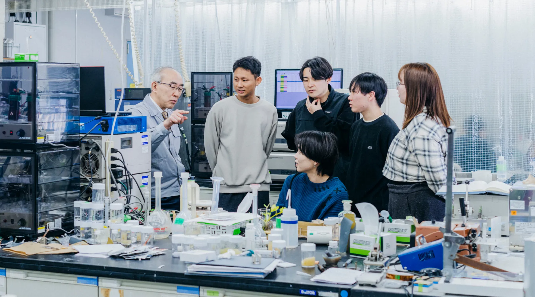We communicate closely with international students in English or Japanese. Particularly, for Japanese, a level of passing the JLPT N1 level is required. In our laboratory, exchange between international and Japanese students naturally occurs, and they participate in international conferences and other activities. We hope that students will inspire each other through these exchanges to dedicate themselves to research and learn the skills they need to be globally active in the future.
