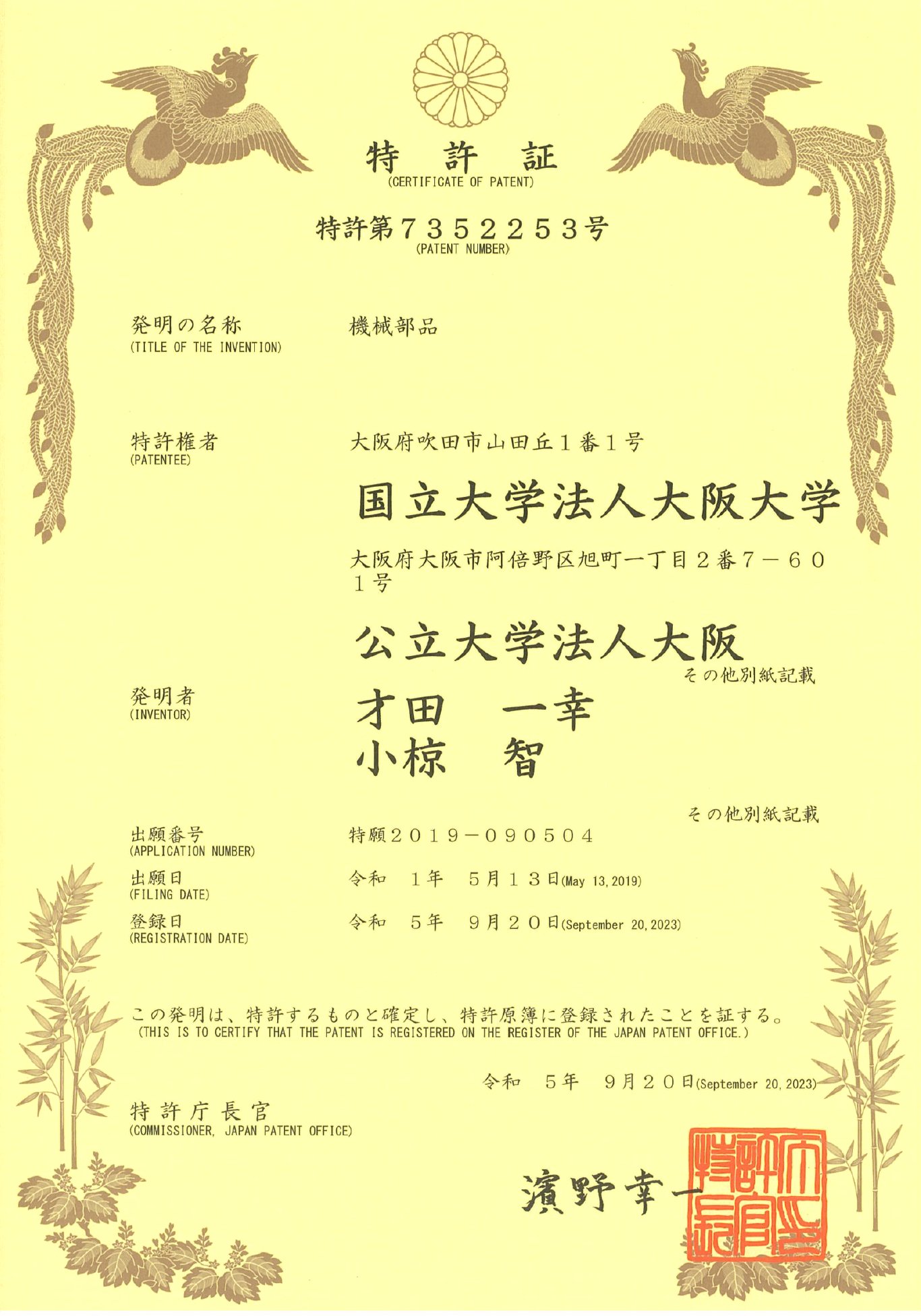 発明者:才田一幸、小椋智、山下正太郎(大阪大学)、