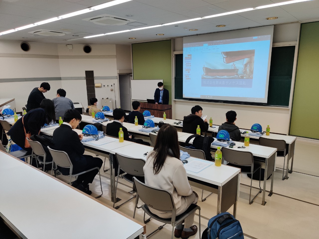 交流会では、造船所見学に加え、たくさんの造船技術者たちを前に学生たちのプレゼンが行われ、技術者との真剣な議論が交わされました。