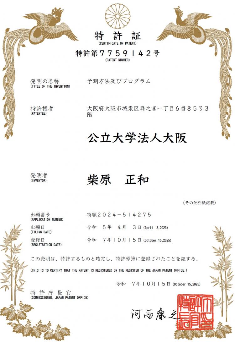 特許:柴原正和 教授、D3 加藤拓也 さん、生島一樹 准教授、前田新太郎 特任助教、D2 山内悠暉 さんが、機械学習を用いた固有変形決定方法に関する特許を取得しました。