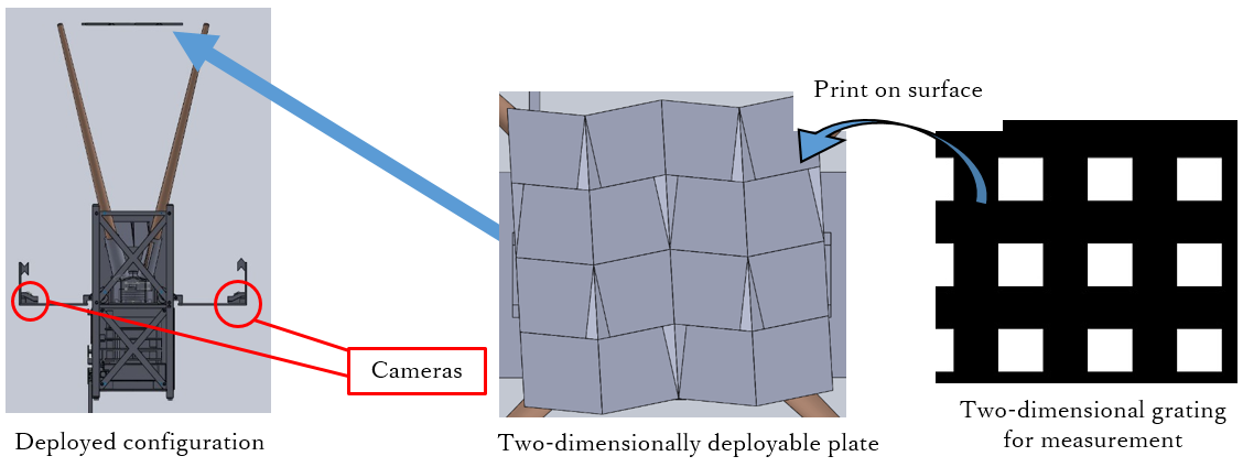 In recent years, there is an increasing need for satellites to be equipped with large-area structures such as solar panels and parabolic antennas in order to carry out more advanced missions. These large-area structures are required to be folded into small pieces due to transportation limitations. It is also necessary to measure whether the shape of the large-area structure meets the requirements of the harsh space environment, such as weightlessness, vacuum, rapid temperature changes, and radiation. "HIROGARI" is equipped with a two-dimensional unfolding structure based on the "Miura-ori" , which is a method of folding a flat surface such as a sheet of paper into a smaller area, and will deploy it in space. It will also carry an optical surface measurement system using a two-dimensional grid to demonstrate its usefulness. This project will demonstrate the deployment structure and the measurement method in space for the first time in the world.