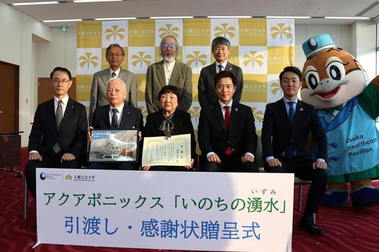 万博で展示されたアクアポニックス「いのちの湧水」の引渡し及び個人寄附者への感謝状贈呈式を開催