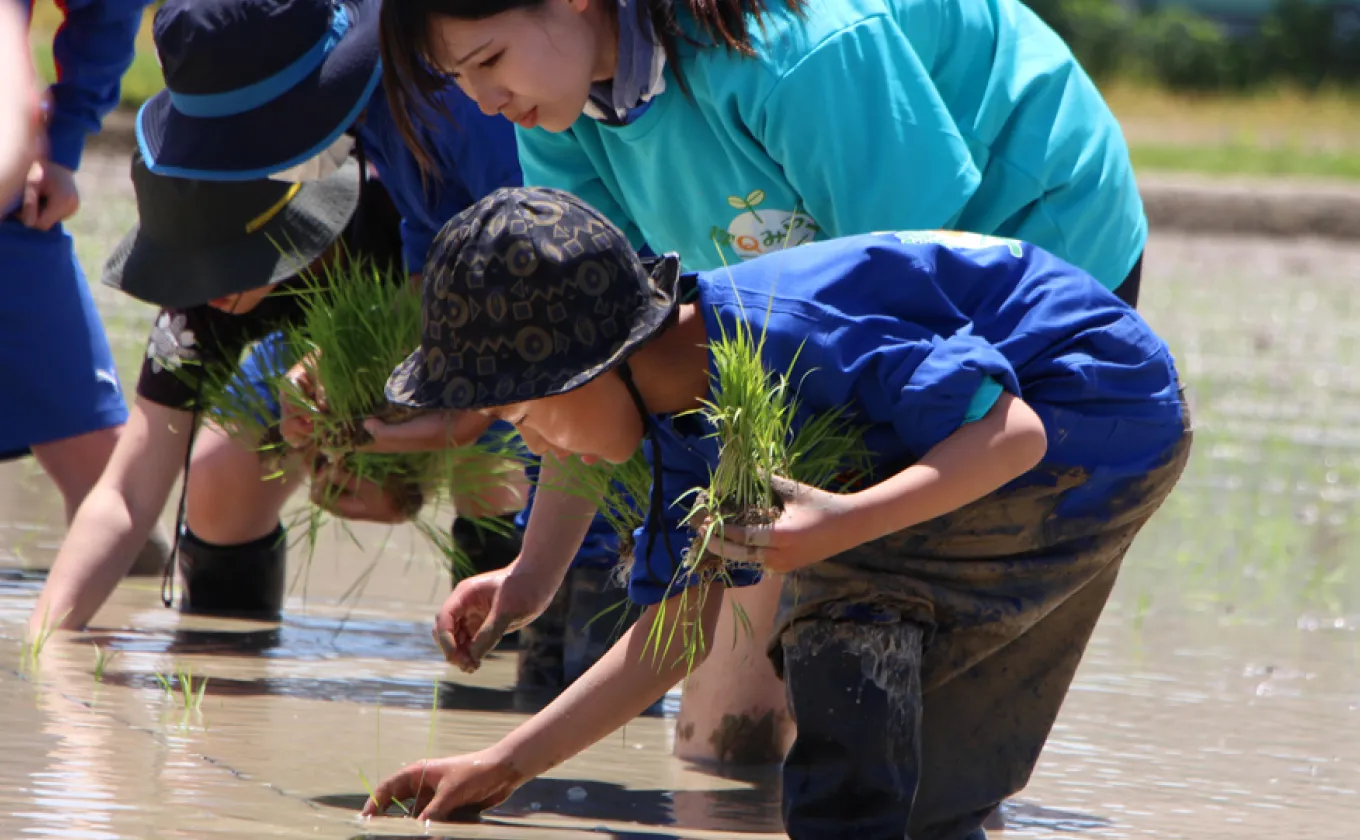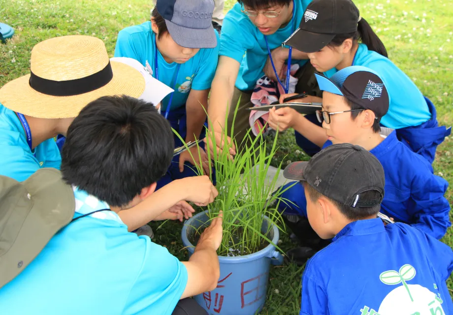 附属農場では種もみの選別から収穫・品質検査まで、コメ作りの全工程を体験します。自宅でもバケツイネ栽培を通じて、生命の尊さや育てることの複雑さを実感します。