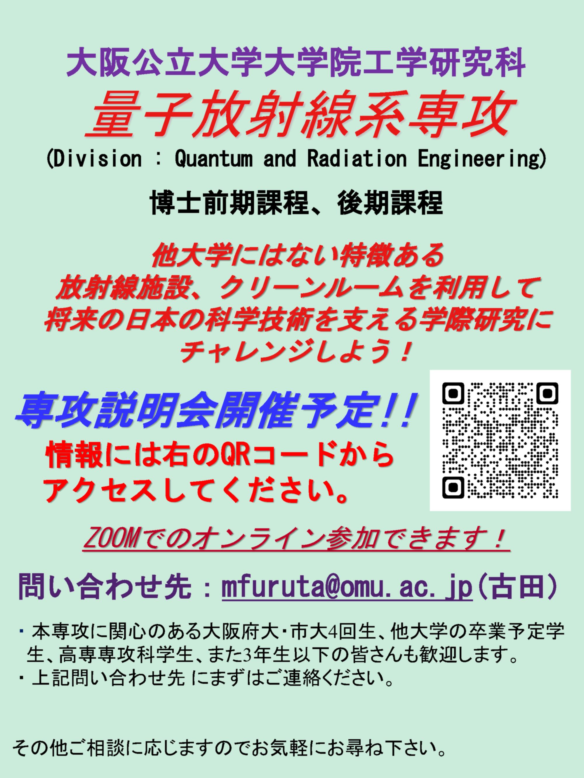 大学院量子放射線系専攻説明会(ZOOM) 【工学研究科量子放射線系専攻】