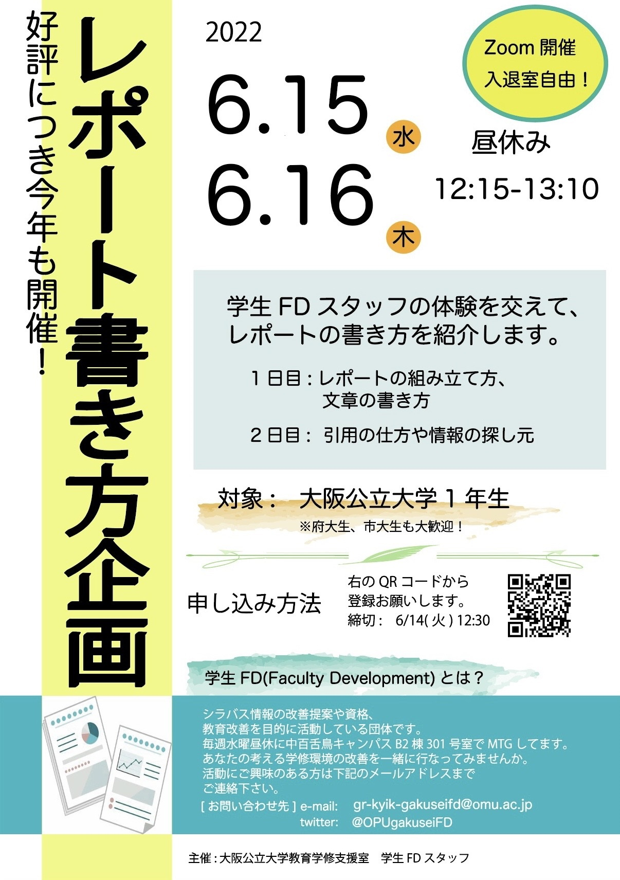 【参加者募集】レポートの書き方(初心者向け)企画 【教育学修支援室 学生FDスタッフ】