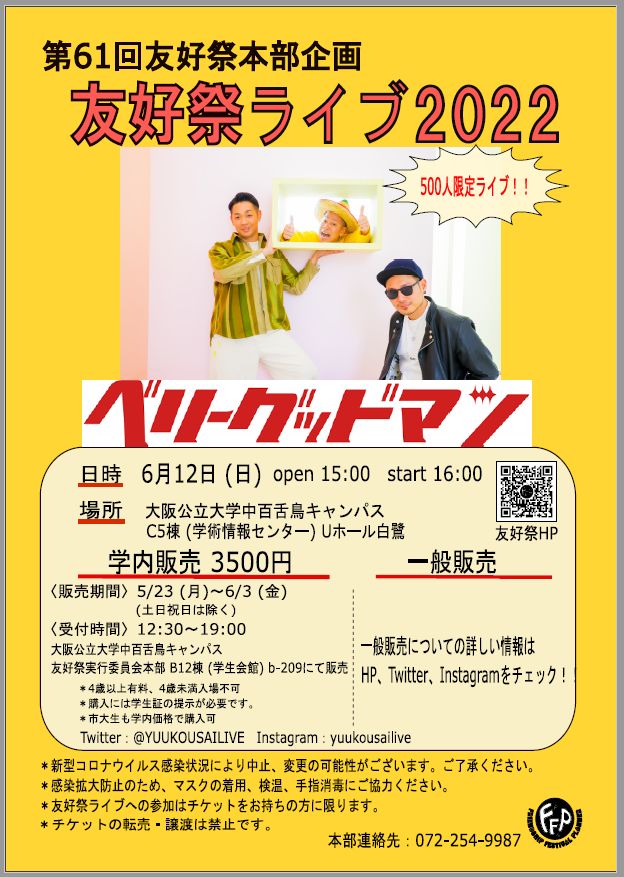 そして、12日(日)には「友好祭ライブ2022」が開催されます!!今年は数年ぶりとなるアーティストライブです!