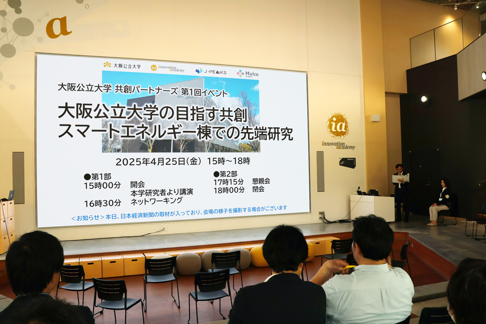 2025年4月25日(金)、中百舌鳥キャンパス「イノベーションアカデミー スマートエネルギー棟において、『大阪公立大学の目指す共創 スマートエネルギー棟での先端研究』と題して、4月1日に発足した大阪公立大学 共創パートナーズ初となる会員限定のイベントを開催しました。