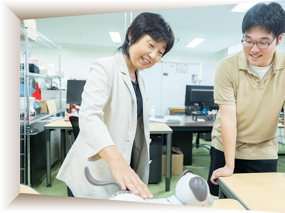 ICTを活用した健康教育、ヘルスケア分野の研究に取り組んでいます。研究テーマの1つは「ICTを活用した小学生向け認知症啓発教材の開発」です。PepperやRoBoHoNといった人型ロボットを用いて認知症の基礎知識に関する寸劇を披露することで、例えば、小学生が楽しく学べるような教材の開発・研究をしています。また「ヘルスケアにおける地理情報システムの活用」という研究では、GIS(地理情報システム)を活用し、保健福祉の専門職と共に地域情報を実践に活かします。例えば、ある地域の子どもの人口分布と、子育て関係施設の位置情報の統合により、地域の課題抽出から解決策の立案、評価までを短時間で行うことが可能になります。