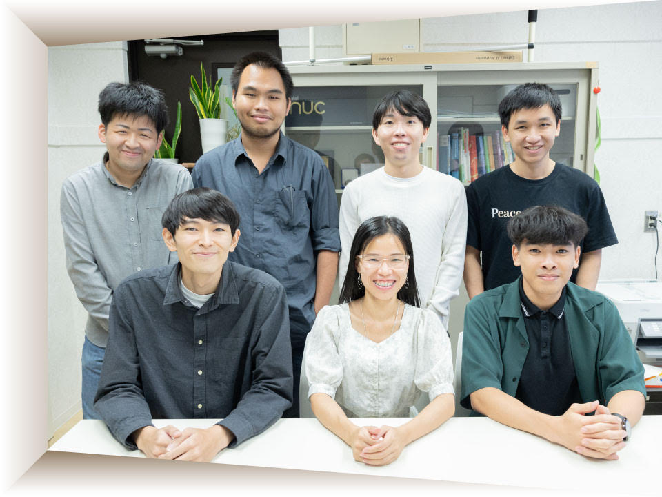 留学生向けの助言として、日本に来るなら日本語を習得すべきですが、研究論文も参考文献も英文で書かれているため、英語もしっかりと勉強しておいてほしいと思います。もちろん語学力だけでなく、専門知識も重要です。自国で勉強する際、あらかじめ、進学先の大学や研究に関する情報を詳しく調べておくことが必要です。日本に留学し、日本で生活していくために、最初は興味を持てそうな日本の映画や漫画を探して、文化に慣れ親しむところから始めましょう。研究室の学生は日本人だけではありません。出身国が異なれば、考え方も様々です。ただし、国籍だけにとらわれずに、一人ひとりの多様性を理解・尊重し、交流していくことが大切です。もしも、学修面や生活面で相談したい時には早め早めに告げること。恥ずかしさで必要なことを言いだせないのは、よくありません。理想と情熱を持ち、自らの研究テーマを定めて、未来への第一歩を踏み出してください。