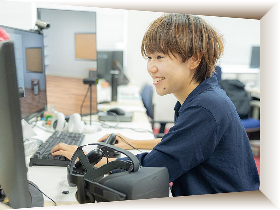私の研究テーマは「オープンエンドな学習空間における史実探索学習支援システムの開発と評価」です。史実のつながりや理解をVRでの探索環境を構築して支援するシステムで、利用者はVRゴーグルを装着し、興味のある史実を選択すると関連する情報がVR上に表れる仕組みです。この時、選択した史実が史跡であった場合にはVR空間上で擬似的に史跡探索ができます。世界中のあらゆる史実に対して情報提示できるのが強みで、探索したいものがない学習者には問い自体をシステムが提示し、探索のきっかけを与えます。そもそも「意味情報と空間情報を対応づけると面白いのでは?」という着想が研究の始まりで、自分も好きな歴史をテーマにした学びの支援を思いつきました。将来は世の中を驚かせるようなものを開発したいと思っています。