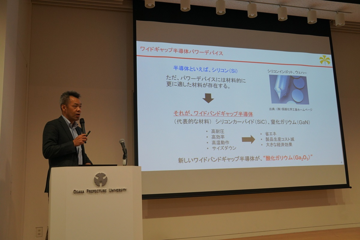また、「最強の工学部を目指して」と題した講演会では、綿野工学部長・工学研究科長による研究科紹介のほか、物質化学生命系専攻の床波 志保准教授、都市系専攻の嘉名 光市教授、電子物理系専攻の東脇 正高教授による工学研究科イチオシの最新研究を紹介しました。