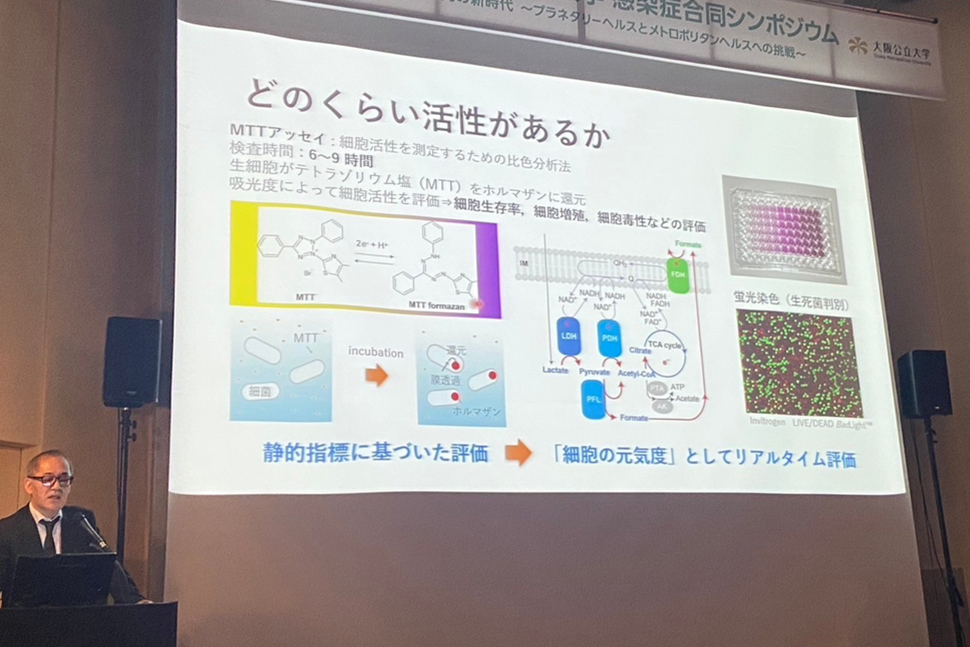基調講演では、大阪公立大学大阪国際感染症研究センター(OIRCID)の朝野 和典事業総括が「OIRCIDの目指すメトロポリタンヘルス」と題した、行政との連携による都市シンクタンク機能を活用した取り組みを紹介しました。