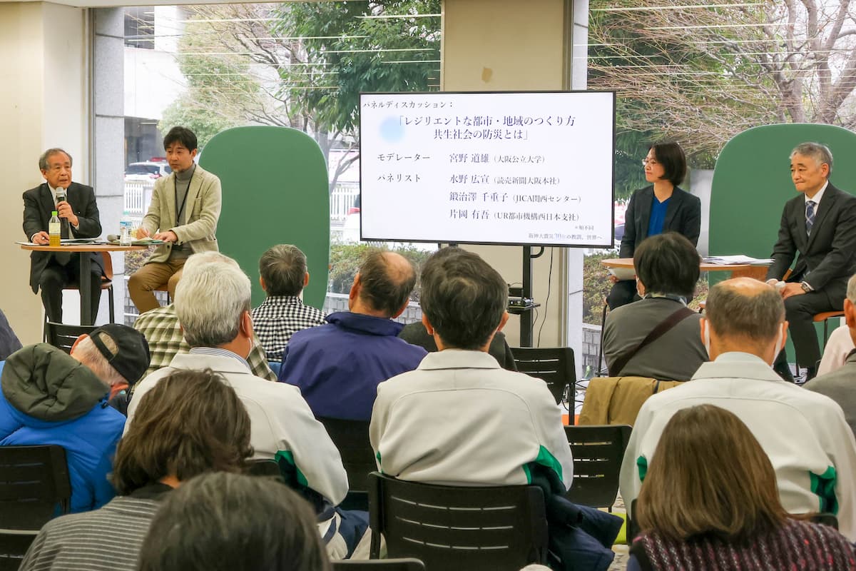 震災から30年が経過し、記憶の継承が困難になる「30年の壁」が懸念される中、報道・国際協力・住まい・教育の視点からレジリエントな社会づくりについて活発な議論が行われました。