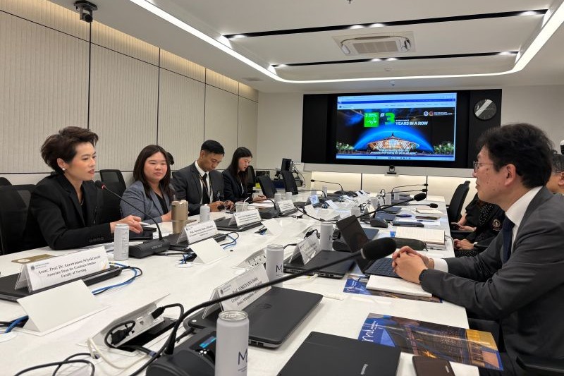 タマサート大学では、Supreedee Rittironk国際交流担当副学長と懇談を行いました。同大学とはJSTさくらサイエンスプログラムでの交流や、商学部の授業の一環として本学学生向けの短期プログラムを実施しているほか、獣医学研究科、リハビリテーション学研究科および都市健康・スポーツ研究センターなどの研究交流も盛んです。懇談では、本学が2029年秋に開設を構想している「College of Creative Studies(仮称)」の概要紹介を行い、先方からは同大学が開設している英語コースの内容や日本への留学ニーズ等に関して説明を受けました。