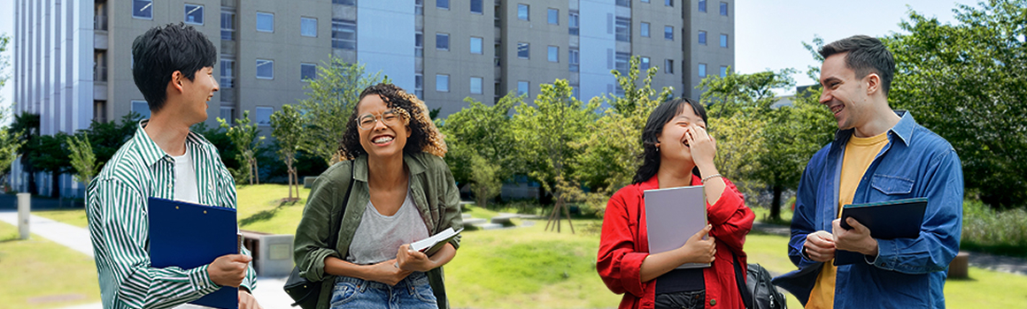 学内の国際交流施設やEnglish Cafe、外国人留学生のサポーター制度などが整備されており、日常的に多文化交流ができる環境が整っています。