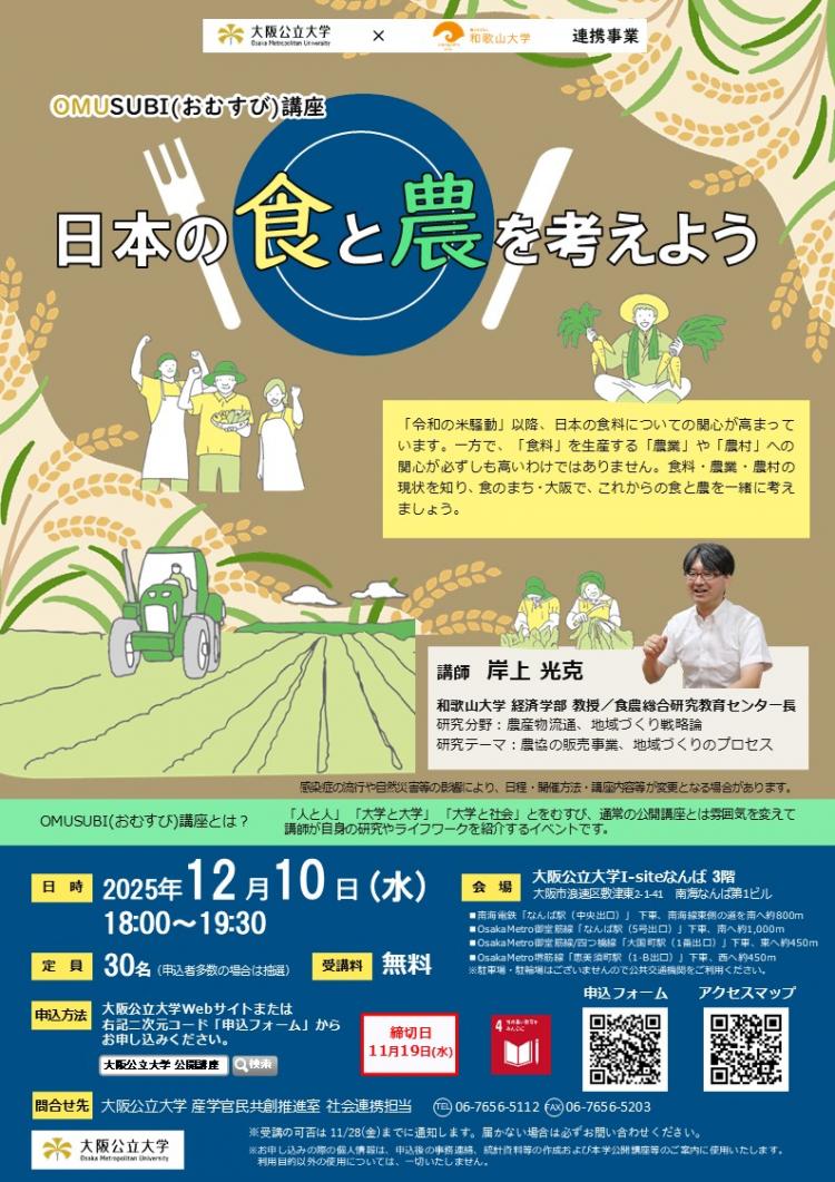 12月10日(水) OMUSUBI講座「日本の食と農を考えよう」 18:00~19:30