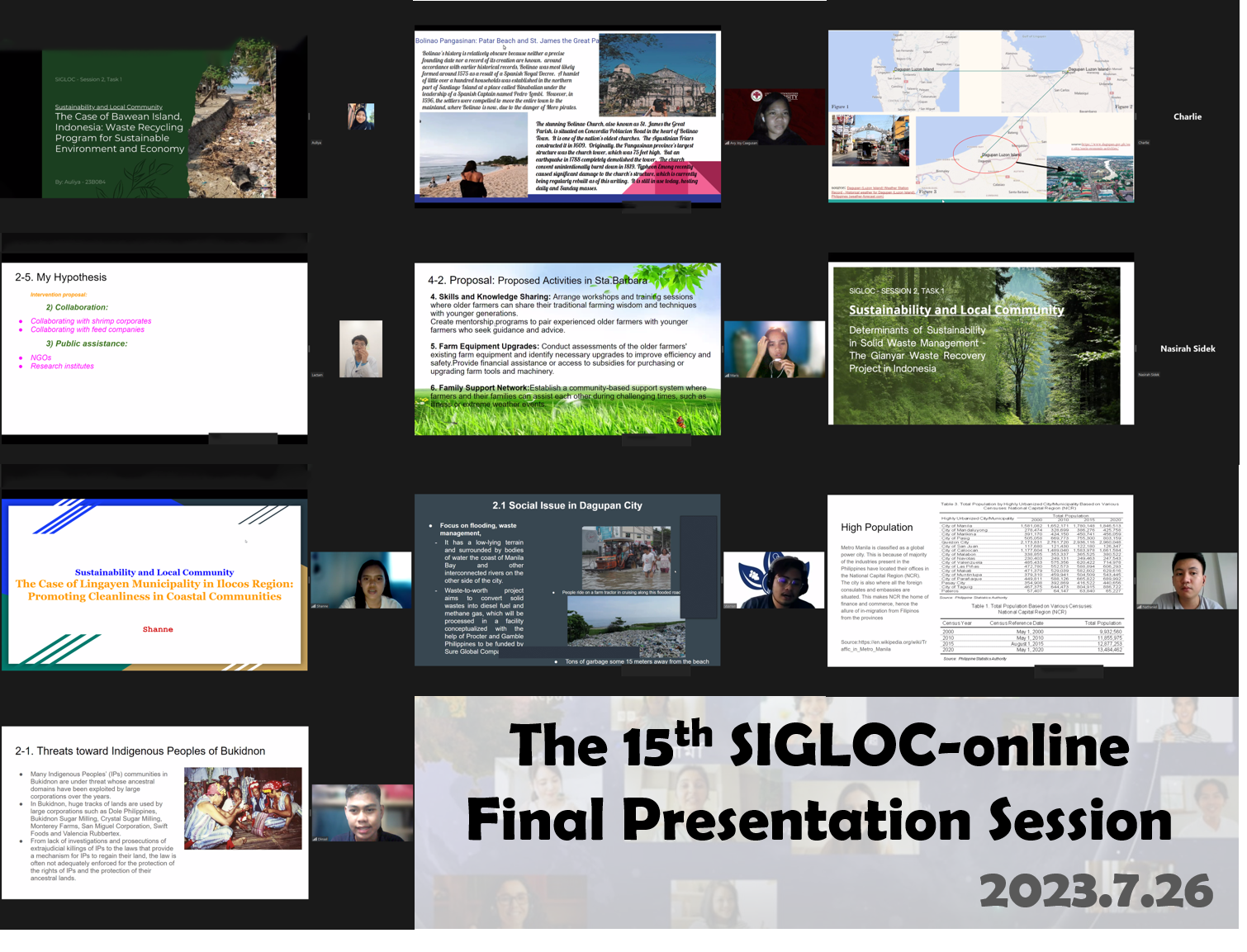 We are pleased to announce that the 15th SIGLOC-online has successfully completed its three-week period from July 10 to July 28, 2023.with 45 students from seven countries in Asia and Africa. This report provides an overview of the three weeks of learning undertaken by the participating students in this programme.