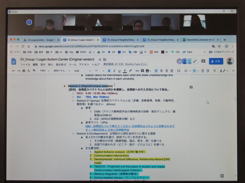 From March 16 to 24, 2020, 8 students from Osaka City University conducted online training with Andrews University students, using a web conference system. Initially, the plan was to go to the United States and conduct collaborative training such as internships with students of Andrews University. But in order to prevent the spread of the new coronavirus infection, it was urgently changed to an online format for all students and teachers. The program was carried out by COIL system, which allowed participation from home.