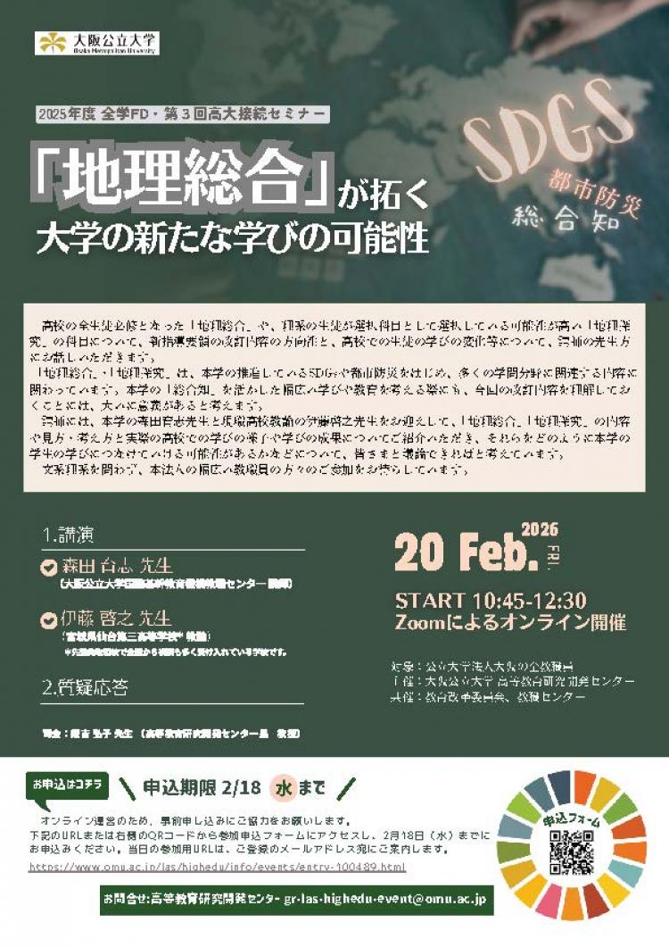 2/20(金)第3回高大接続セミナー「『地理総合』が拓く大学の新たな学びの可能性」を開催します!