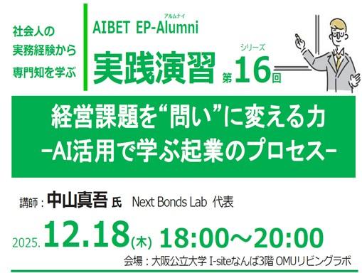【参加者募集】12/18(木)開催 実務家による実践演習シリーズ第16回「経営課題を“問い”に変える力-AI活用で学ぶ起業のプロセス-」