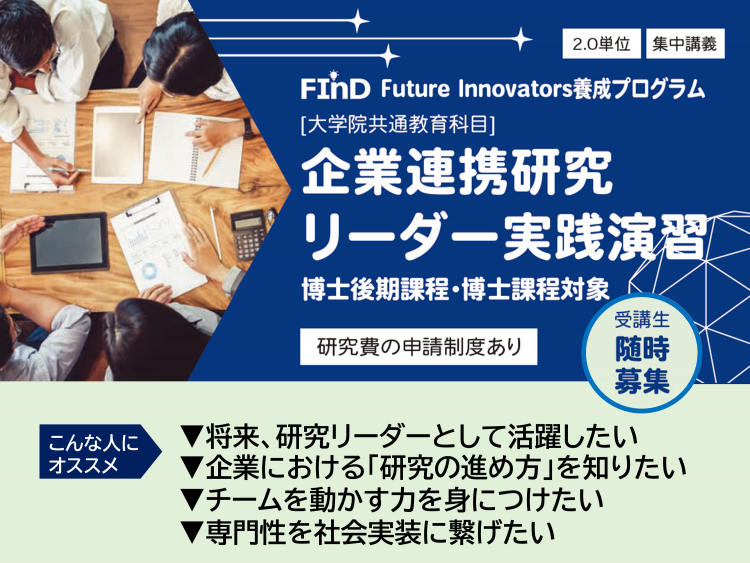 【ご案内】受講生募集_大学院共通教育科目 企業連携研究リーダー実践演習