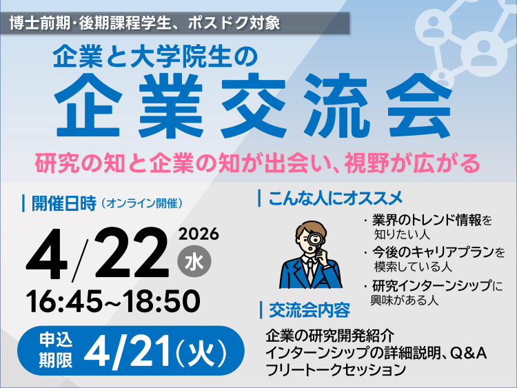 【参加者募集】博士前期・後期課程学生・ポスドク対象「企業交流会2026」4/22開催