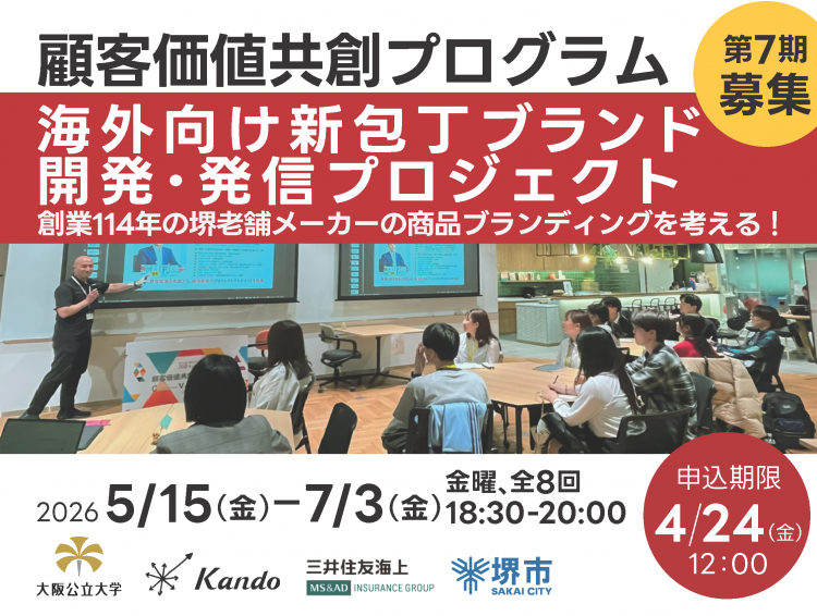 【参加学生募集】5月開講「顧客価値共創プログラム第7期」創業114年の堺老舗メーカーの商品ブランディングを考える!「海外向け新包丁ブランド開発・発信プロジェクト」