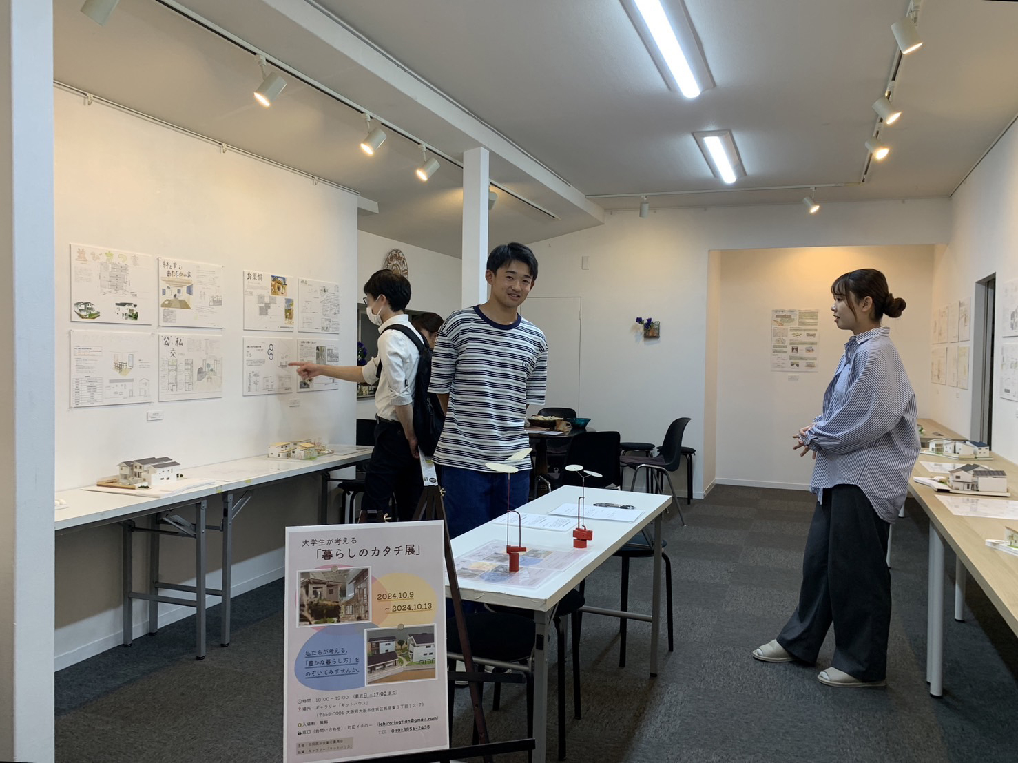 居住環境学科の住宅設計グループ課題(2回生前期)に取り組んでいた学生たちが現地調査として大学近所の地域のギャラリーに飛び込んだことで様々な縁がつながりました。
