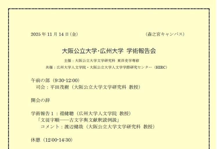 大阪公立大学・広州大学 学術報告会を開催いたします(2025年11月14日)