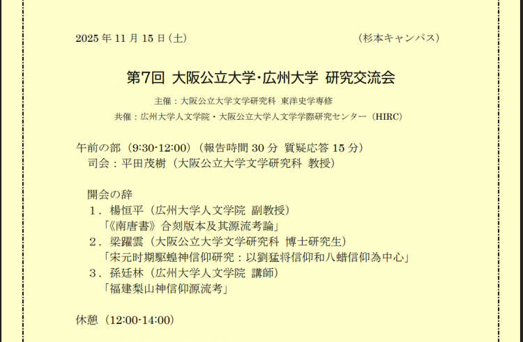 第7回 大阪公立大学・広州大学 研究交流会を開催いたします(2025年11月15日)