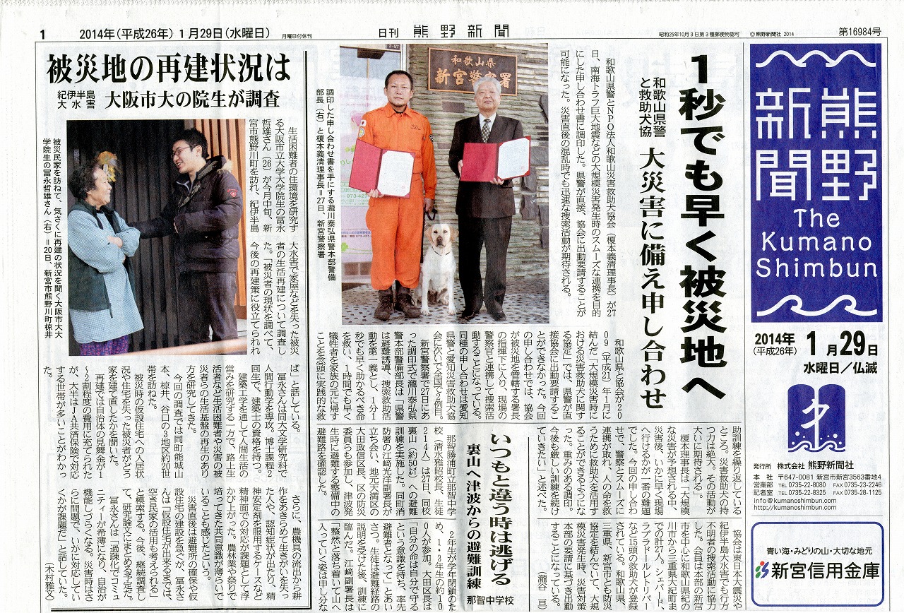 新宮市の台風被害の調査をしている本教室の大学院生(冨永哲雄さん)の活動が『熊野新聞』で紹介されました。