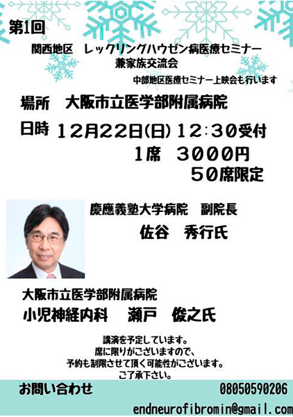 2019年12月22日 大阪市立大学医学部学舎18階会議室にて、関西で始めてNF1家族会が開かれました。
