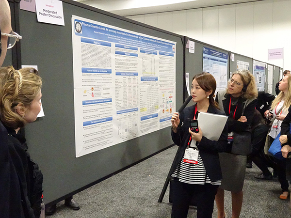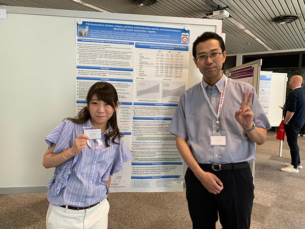 第34回日本糖尿病合併症学会(9月27~28日、大阪国際会議場)に参加しました。教室からは「CDEJ療養指導セミナー/交流集会」のセッションにて絵本正憲が「チーム医療の本領発揮!透析予防をめざした糖尿病性腎臓病へのアプローチ」と題した講演を、ワークショップ(大血管障害3)にて森岡与明が口演発表(Δ5脂肪酸不飽和化酵素活性指標は2型糖尿病の動脈硬化合併症に関与する)を行いました。