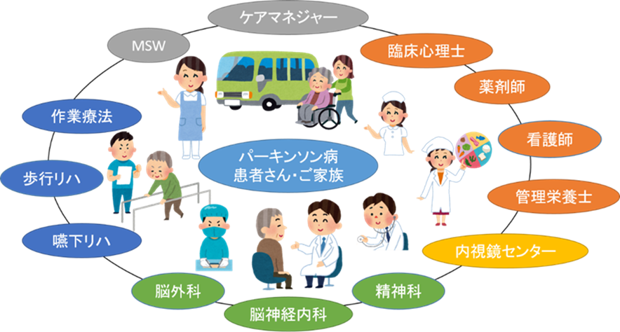 図. パーキンソン病、パーキンソン症候群患者多職種支援のイメージ