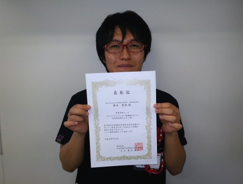 2014年7月5日(土) 薬業年金会館で開催された第100回肺癌学会関西支部学術集会において、当科 篠木聖徳医師が発表しました『クリゾチニブにより腎膿傷を生じたALK陽'性肺がんの1例」が優秀演題として表彰されました。