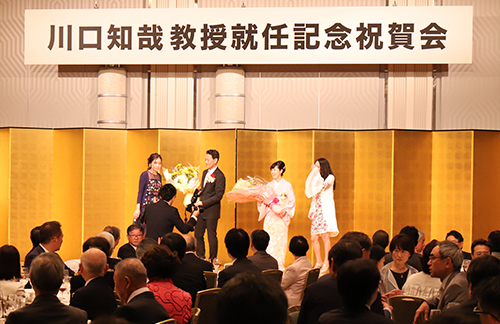 平成30年7月8日 ホテルニューオータニ大阪におきまして「川口知哉教授就任記念祝賀会」を催しました。たくさんの皆さまにお集まり頂き、ありがとうございました。