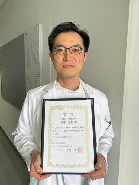 田中史生 先生が第25回日本神経消化器病学会で学会賞 最優秀賞を受賞!