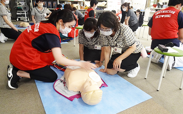 医師・研修医・看護師などの医療従事者や医学部の学生のみならず、一般職員に対しても講習会を開き、危機管理意識を高めています。