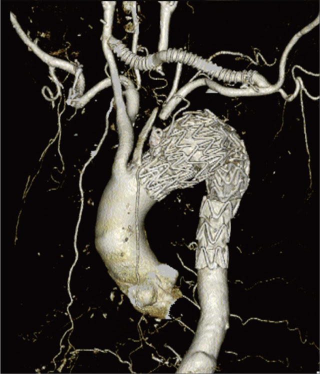 左総頸動脈-左鎖骨下動脈バイパス術後にステント挿入