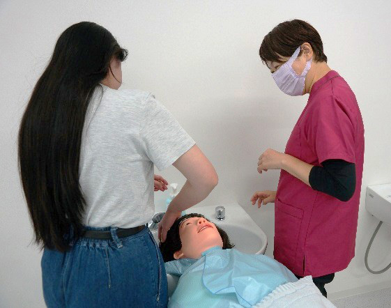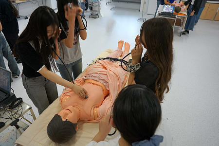 (看護学部実習室でのモデル人形を用いた看護体験)
