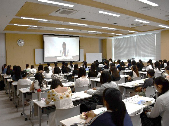 看護学部の授業の雰囲気を味わっていただくため、模擬授業を体験していただきました。