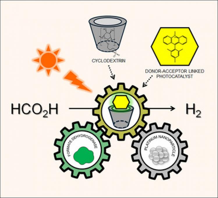 当研究部門では天然の光合成反応を模倣した太陽光エネルギー変換に関する研究を中心に、主に生体触媒・可視光吸収色素・均一触媒からなる複合系による二酸化炭素をプラスチック原材料への変換や水素エネルギーキャリアに関する研究を進めています。 具体的な研究キーワードは「人工光合成」・「二酸化炭素の有価物への変換」・「二酸化炭素の資源化」・「グリーンケミストリー」・「水素エネルギー製造と利用」です。