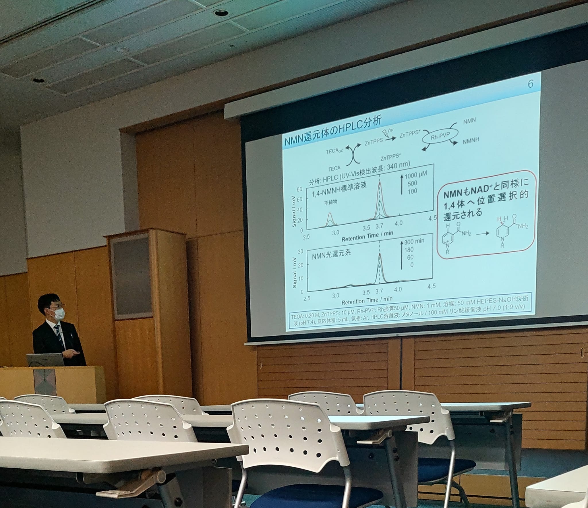 東京理科大学野田キャンパスで開催された第103日本化学会春季年会にてB4末廣君と加納君が口頭発表しました。